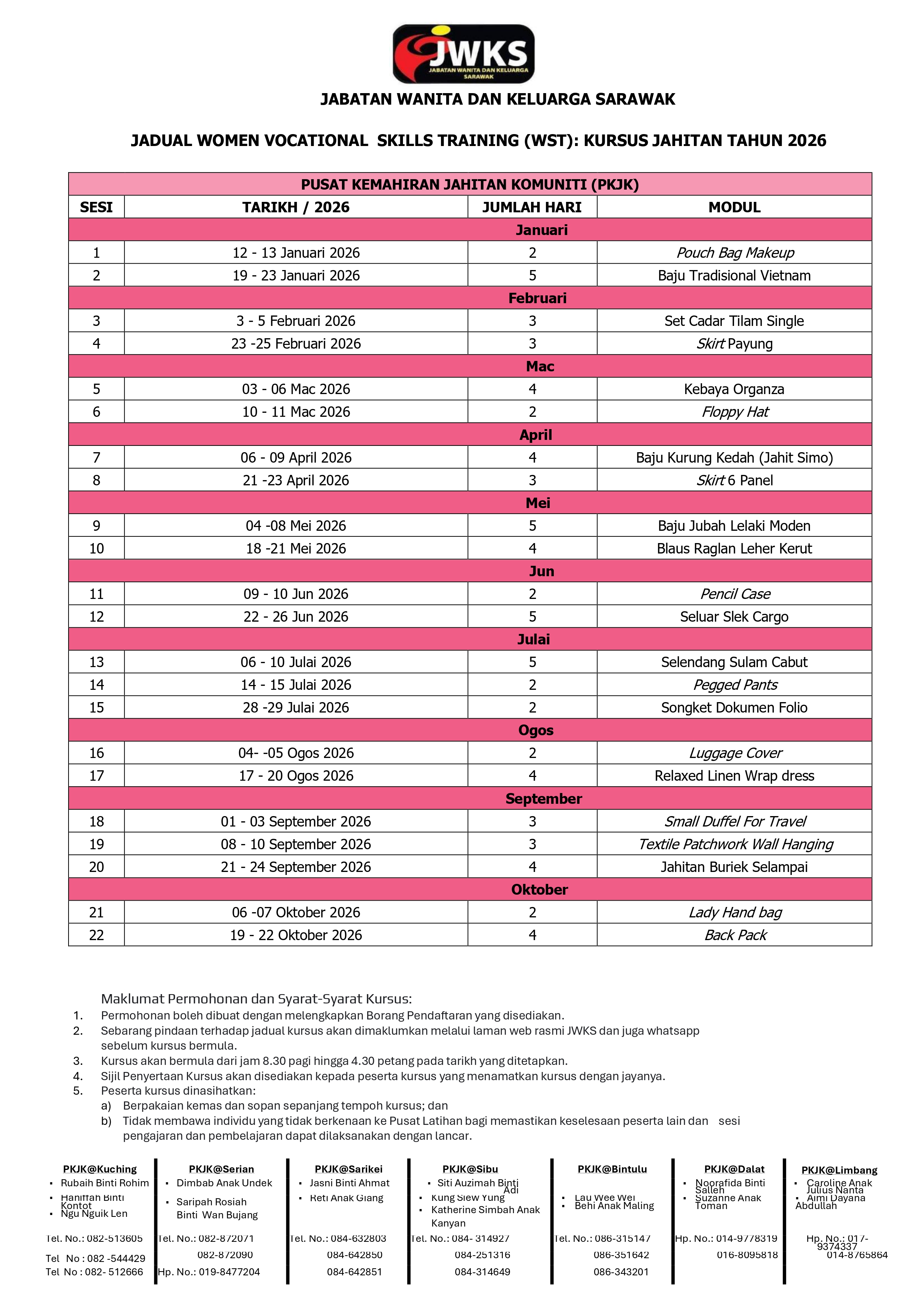 JADUAL KURSUS JAHITAN 2026